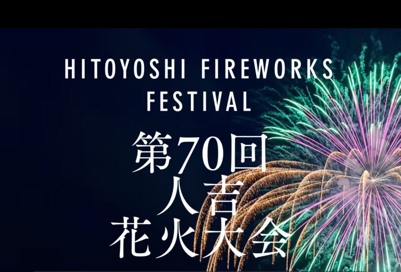 毎年8月15日に開催される「人吉花火大会」は、熊本県内でも有数の規模を誇り、約6,000発の豪快な打上げ花火が夜空を彩ります。