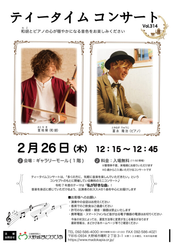 <2026年2月26日>福岡【ティータイム コンサート】